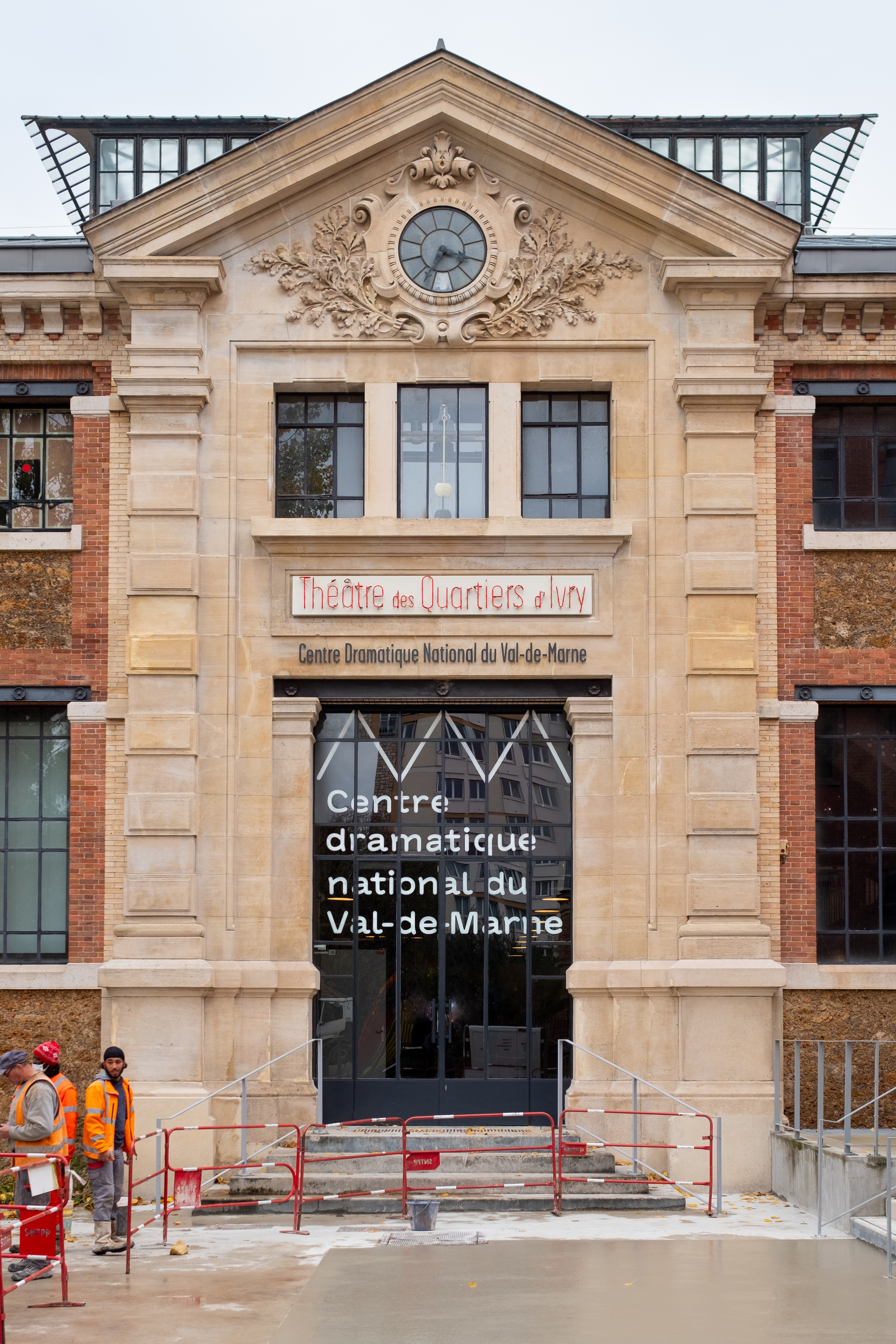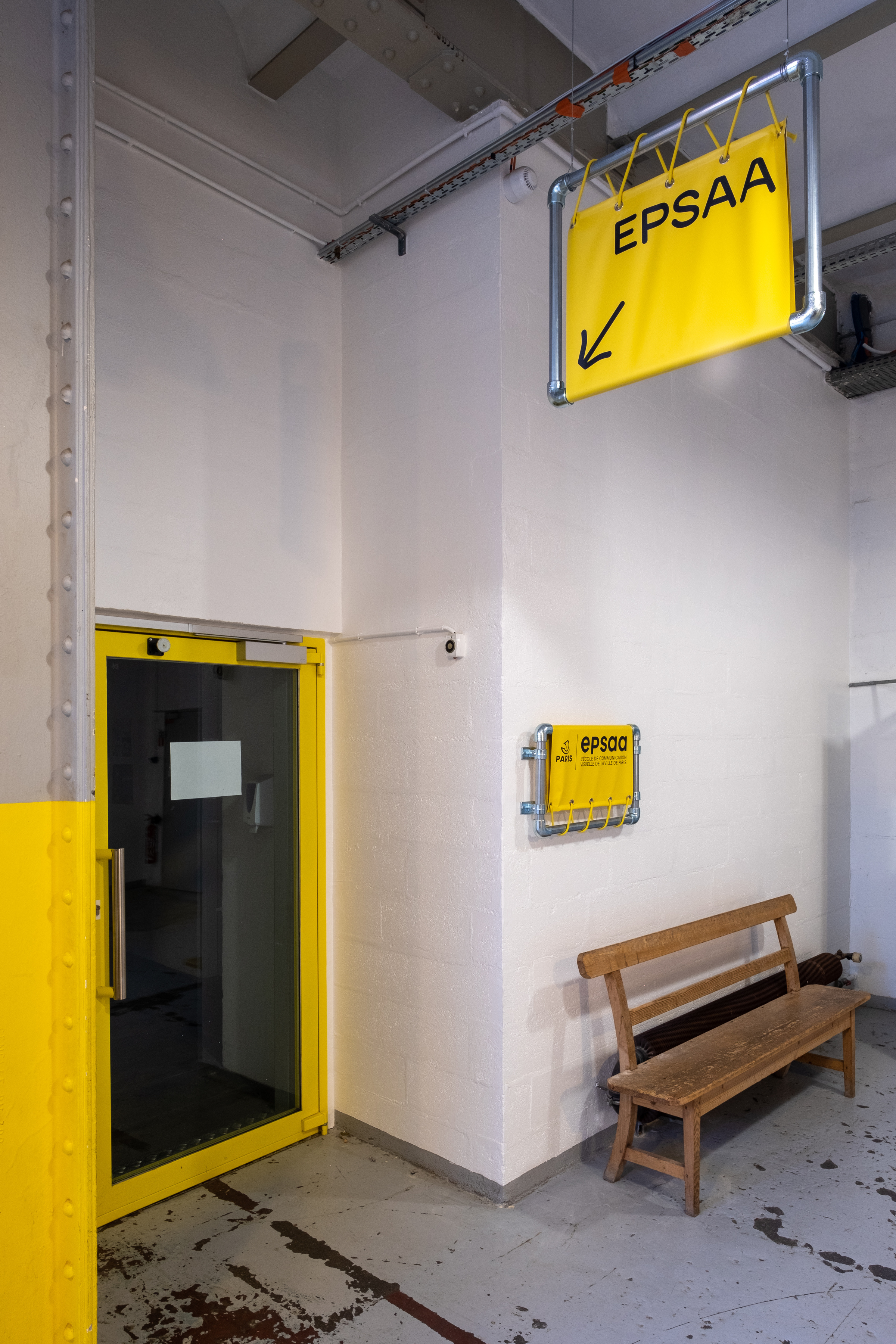 Conception de la signalétique d’identification et d’orientation sur le site hébergeant le Théâtre des quartiers d’Ivry, l’EPSAA – l’École de communication visuelle de la ville de Paris et le Crédac, centre d’art contemporain d’Ivry.